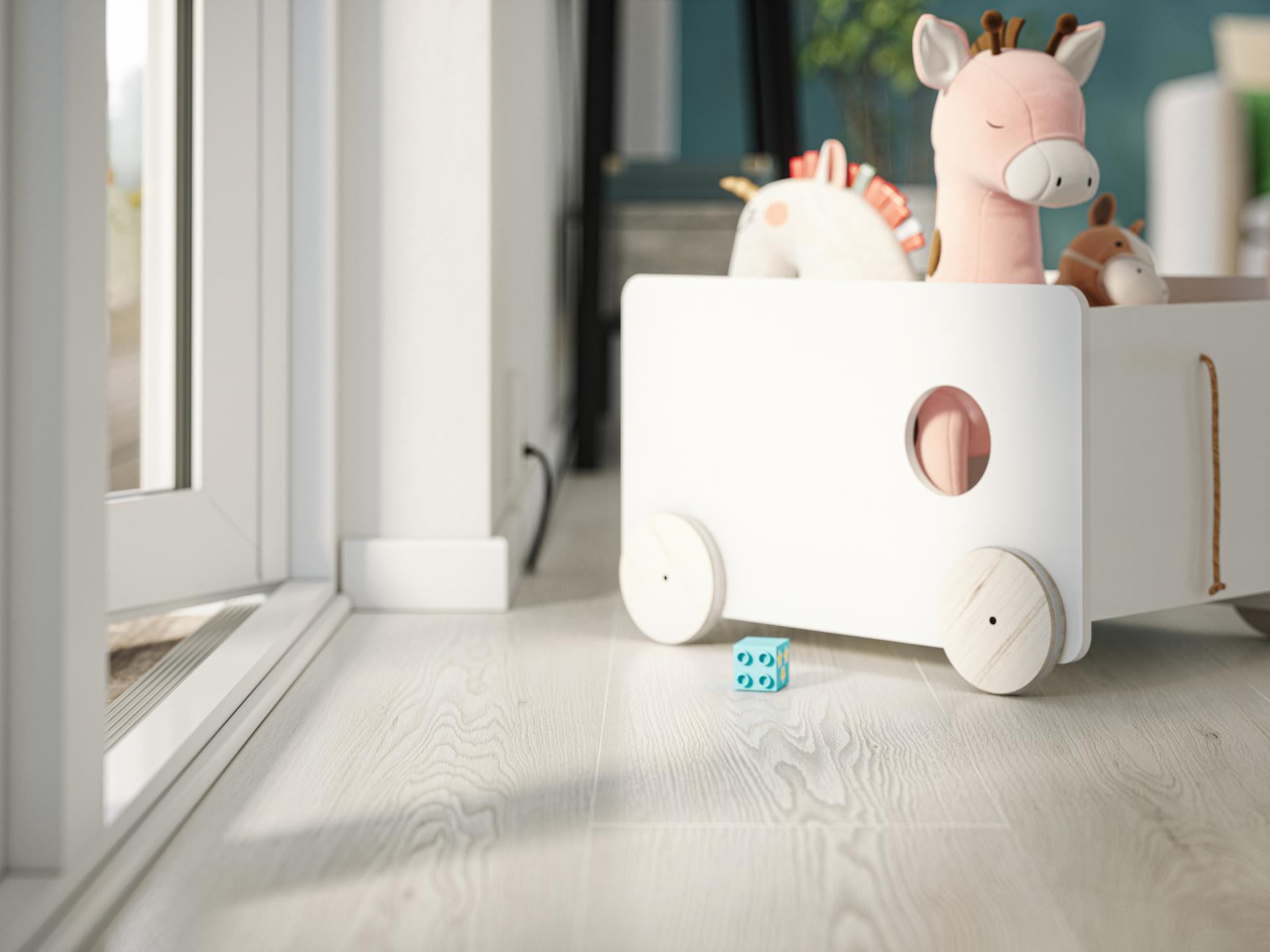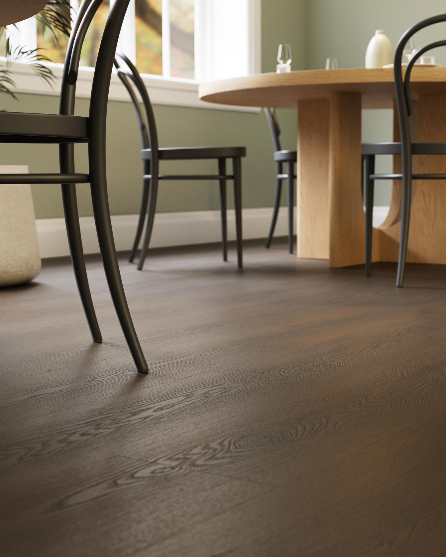 Våre høytytende, rigid core gulv er ideelle for en aktiv livsstil. Med det autentiske og utsøkte utseendet og følelsen av skandinavisk eik er de også vanntette, lydabsorberende og enkle å legge.